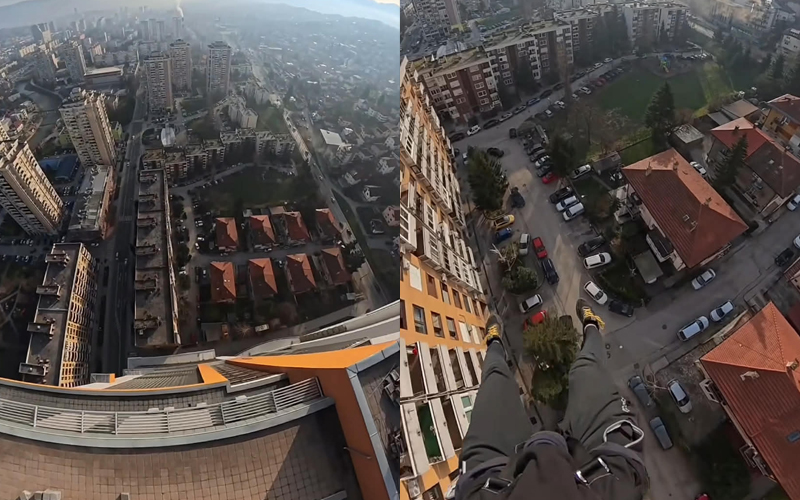 Pogled s vrha Bosmala, koji se uzdiže na 118 metara, a potom i sa Avazovog tornja, visokog čak 175 metara, ostavlja bez daha. Za ovog padobranca, svaki trenutak predstavljao je izazov. Njegova avantura snimljena je od strane Instagram stranice Freeflow Nation, koja je poznata po ekstremnim sportskim podvizima.